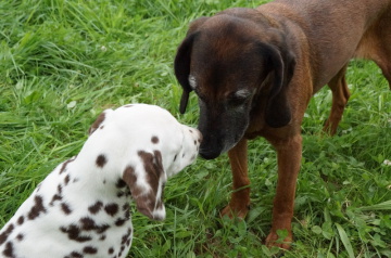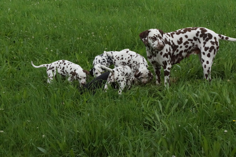 Mein Gott, die Zeit verfliegt wie im Flug. Die Welpen sind schon sooooo groß geworden. Mittlerweile läuft der Rest der Truppe schon brav bei kleinen Ausflügen mit. Zwischendurch üben wir dann ein bischen an der Leine zu laufen. Die Zwerge haben mittlerweile auch Bekanntschaft mit unserer Hundebande gemacht und haben vor allem mit dem Dackel viel Spass beim Toben!